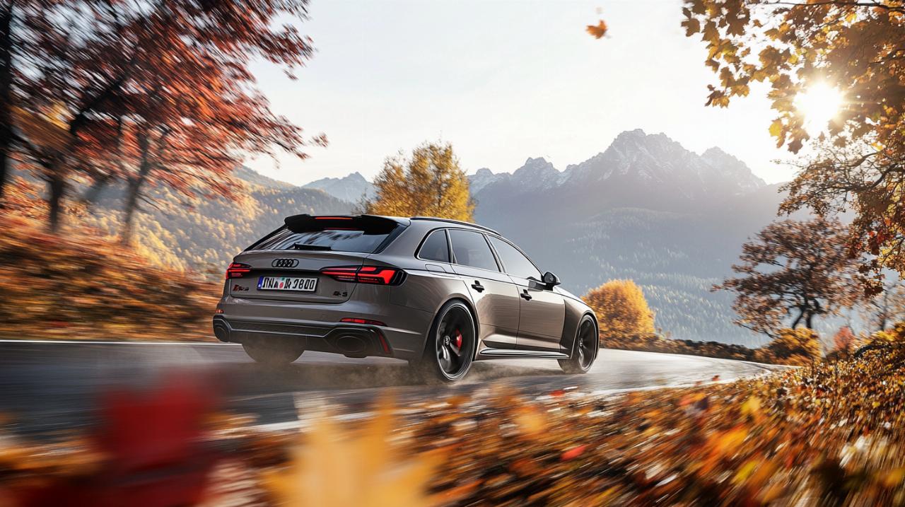 L'Audi RS4 Avant en gris Nardo incarne l'équilibre parfait entre raffinement esthétique et performances débridées. Ce break sportif
